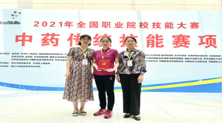 6月23日至25日,2021年全国职业院校技能大赛“中药传统技能”赛项在重庆三峡医药高等专科学校举行,来自全国29个省市区的29名选手参赛。我校代表山东省参赛选手宋子越同学,取得总分排名第五的好成绩,荣获二等奖。