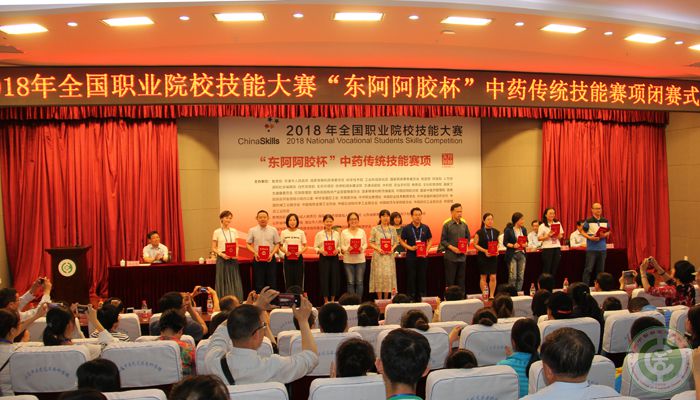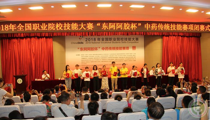 经过激烈角逐,2018年全国职业院校技能大赛“东阿阿胶杯”中药传统技能赛项于6月1日下午在我校落下帷幕。本次大赛共有12名选手获得一等奖,23名选手获得二等奖,35名选手获得三等奖。12名大赛一等奖选手的指导老师荣获“优秀指导教师奖”。我校选手于小斌、高雅静从来自全国27个省69个院校的115名选手中脱颖而出,分别以总分第一和第二的优异成绩荣获大赛一等奖。李雪莹、沈伟两位老师荣获“优秀指导教师奖”。