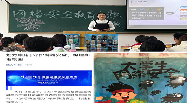 此次宣传活动普及到中药系全部在校学生,主要以主题班会、宣传海报、微信推送、知识竞赛等形式开展网络安全宣传教育,普及网络安全知识。活动中,呼吁广大学生要自觉遵守《网络安全法》等国家相关法律法规,不参与制作、发布、传播违反国家法律、影响国家安全、破坏社会稳定、破坏民族团结等各类违法有害信息,努力维护国家网络安全;要主动拿起法律的武器,坚决同网上的杂音噪音、歪风邪气作斗争。并提醒同学们不要轻信网络信息、随意泄露个人信息,要提高防范意识;不能无中生有、不信谣、不造谣、不传谣,提高自身辨别能力,以科学事实为依据,不盲目跟从,携手共建健康文明的网络环境。教育引导同学们,用网而不沉溺于网络,坚守理想信念,用青春传播正能量,积极践行社会主义核心价值观,把自己锻造成堪当民族复兴大任的时代新人。