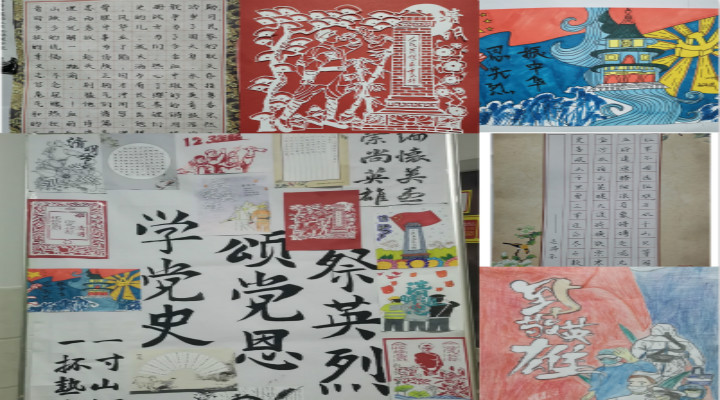 书画展共收到参赛作品100余件,作品形式多样、内容丰富、主题鲜明、水平精湛。同学们以史为魂,依托丰富的党史素材,运用绘画、书法、海报、剪纸等形式再现党史中的革命英烈。笔墨寄哀思,色彩传能量。同学们以革命先烈坚定的信念、爱国意识、无私奉献的精神为依托,用一幅幅饱含深情的书画作品,感悟党史学习意义,祭奠革命先烈。