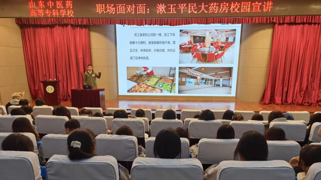 11月27日,漱玉平民大药房连锁股份有限公司在综合楼一楼报告厅举办“漱玉店长班”校园宣讲会。漱玉平民人力资源部相关负责人到校宣讲,中药系主任李波、党总支书记徐迎涛、辅导员及2022级全体学生参会。
