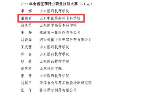 近日,山东省人力资源社会保障厅公布了2021年度“山东省技术能手”名单,共计545人,我校中药系教师梁丽丽榜上有名。
