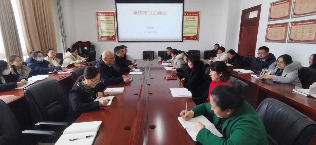 3月1日上午,中药系在综合楼1004会议室召开新学期全体教职工工作会议,中药系主任李波、中药系党总支书记于昕对新学期工作进行安排部署,中药系全体教职工参加会议。