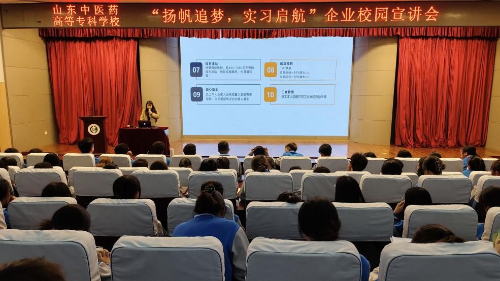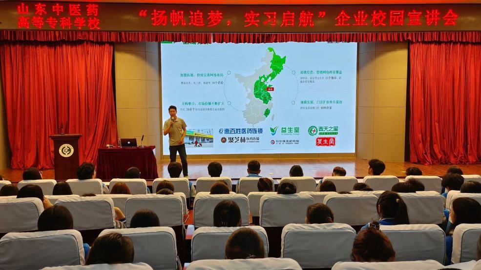 宣讲会上,鲁南制药集团股份有限公司、漱玉平民大药房连锁股份有限公司及青岛同方药业连锁有限公司负责人分别就企业概况、人才岗位需求、工作环境及福利待遇等方面进行了详细介绍。现场座无虚席,气氛热烈。宣讲会后,同学们踊跃投递简历,并参加了面试。