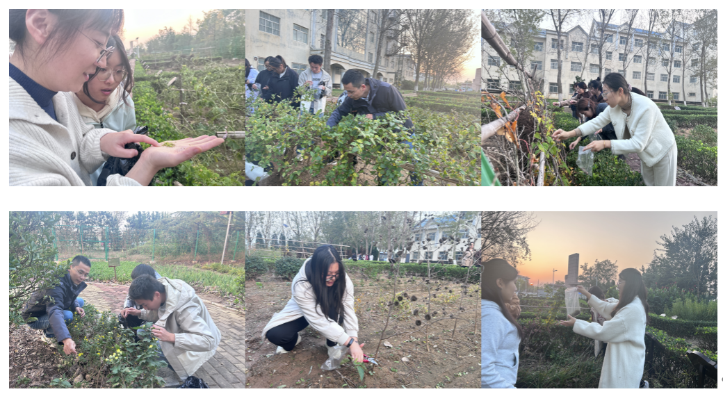 采收活动现场,热火朝天。指导教师向学生详细介绍药材特性,示范采收技巧。学生们分工明确,有的负责收获药材,将鸡冠花、泽兰、菊花、侧柏、薏苡等药材的药用部位剪下;有的负责采摘苘麻、桔梗、车前、地肤等药材的种子,为来年的丰收储存希望;有的承担起整理工作,将采摘的药材与种子放进收集袋里。最终,师生们共收获药材8种,采集种子18种。