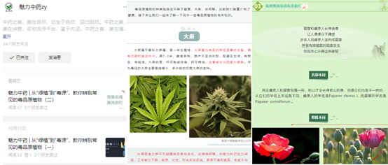 利用微信公众号平台,中药系以“从‘绿植’到‘毒源’,教你辨别常见的毒品原植物”为主题,在全校范围内展开了一场禁毒宣传活动,向大家科普了如何分辨大麻、罂粟、麻黄草等多种毒品原植物。并结合专业优势,从中药的角度出发分析了植物的药用价值,使同学们正确看待并珍惜自然资源。本次禁毒宣传不仅是一次毒品知识的普及,更是一场中药文化的深度挖掘与展示。