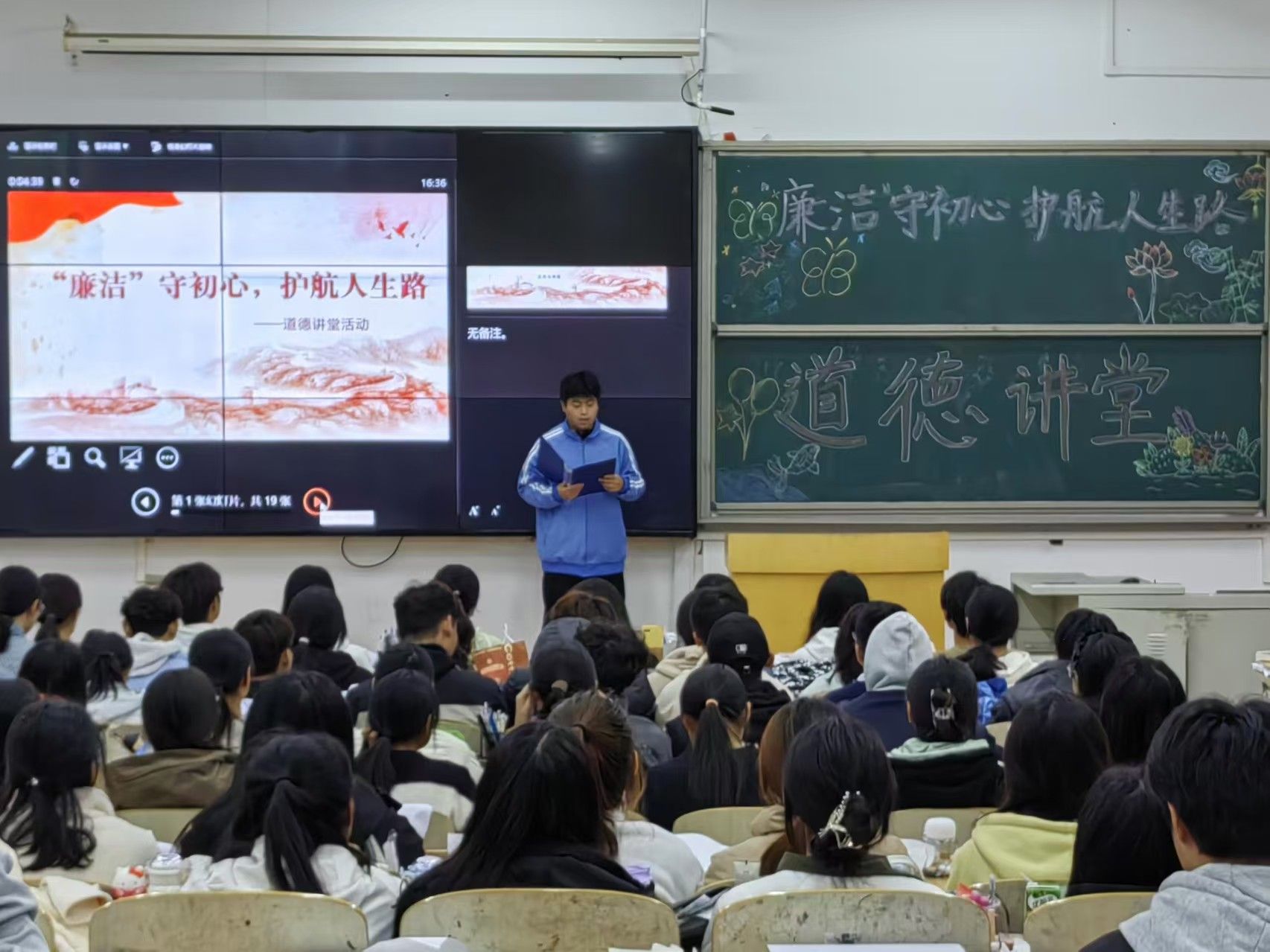 在“学廉规”环节,主持人领学了党纪国法中与廉洁相关的重要条款,以及医药行业的廉洁自律准则。警示大家要时刻保持清醒的头脑,严格遵守法律法规和职业道德规范,不触红线,坚守底线。“唱响正气歌,廉洁伴我行……” 在唱廉歌环节,全体人员共同唱响了《唱响正气歌》。激昂的旋律、响亮的歌声,让廉洁的理念深入人心,激发了大家的廉洁情感,弘扬了正气清风。接着,大家一同观看了廉洁教育专题片。片中通过真实的案例,展现了一些人因腐败而走向堕落的过程,以及给党和国家、个人和家庭带来的巨大伤害。这些触目惊心的画面,让在场的每一个人都深受触动,深刻认识到廉洁自律的重要性和腐败行为的危害性。在谈感悟环节,师生代表们纷纷踊跃发言,分享自己参加此次道德讲堂的心得体会。一位学生代表说:“作为一名中药学专业的学生,我们将来要从事与医药相关的工作,廉洁是我们必须坚守的底线。通过今天的活动,我更加深刻地认识到,只有廉洁自律,才能更好地为患者服务,为社会作出贡献。” 一位辅导员也表示:“在教学和科研工作中,我们要以身作则,言传身教,将廉洁教育融入到日常的教育教学中,培养学生的廉洁意识和职业操守,为他们的未来发展奠定坚实的基础。”