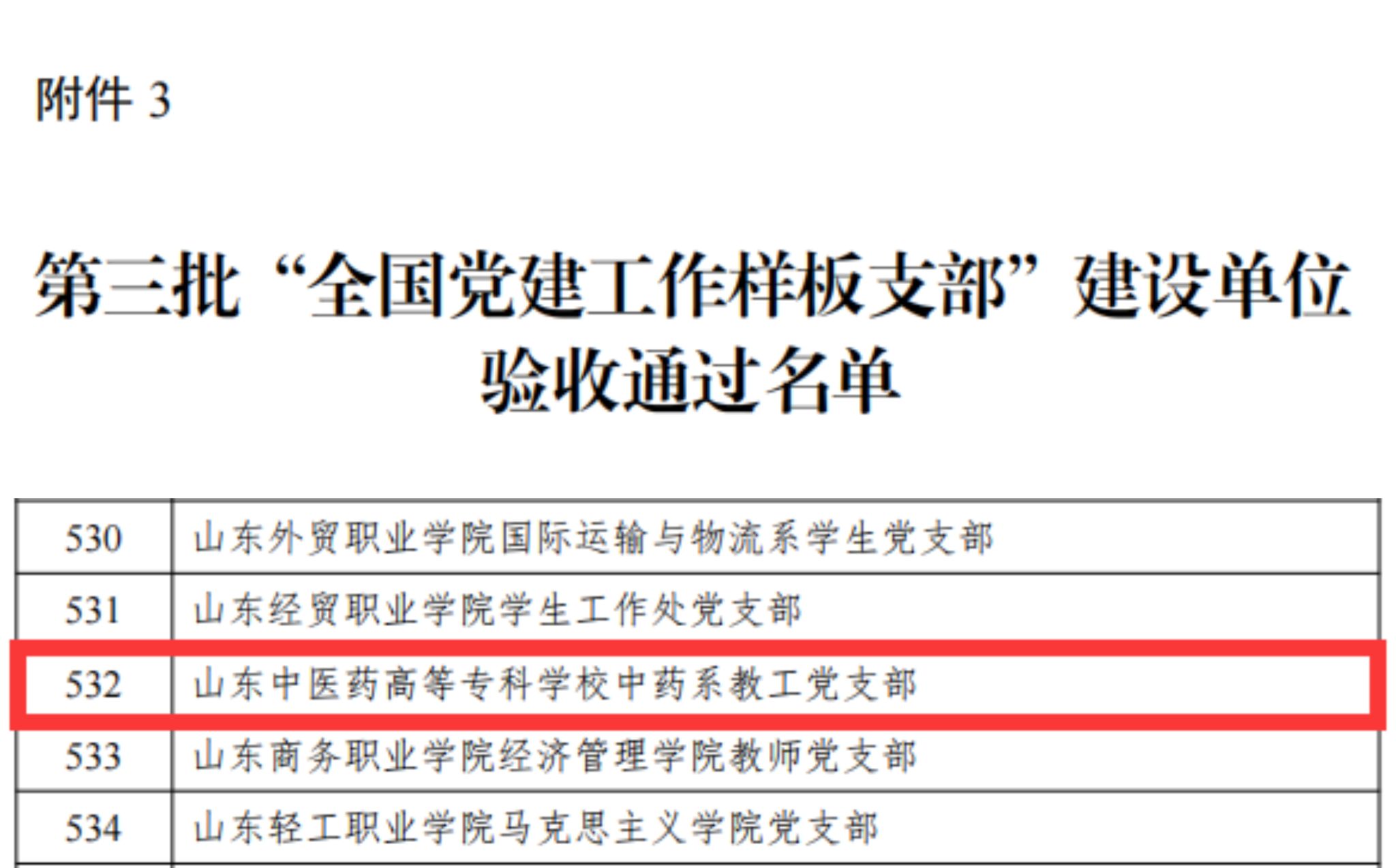 11月6日,教育部办公厅公布第三批新时代高校党建示范创建和质量创优工作验收结果,中药系教工党支部顺利通过第三批“全国党建工作样板支部”建设单位验收。