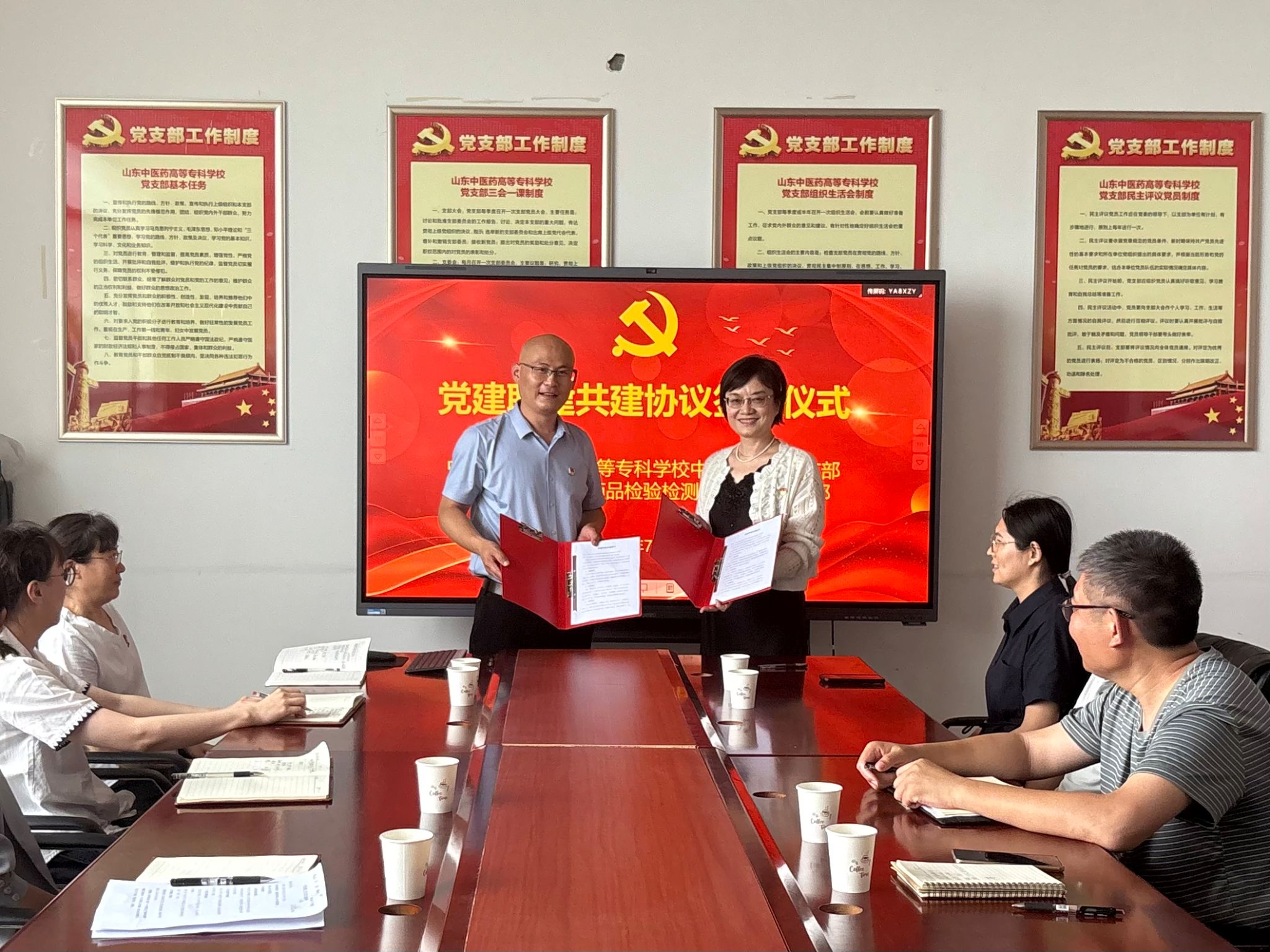 为深化党建引领,凝聚支部发展合力,7月2日,中药系教工党支部与烟台市食品药品检验检测中心第二党支部启动党建联建共建并举行签约仪式。