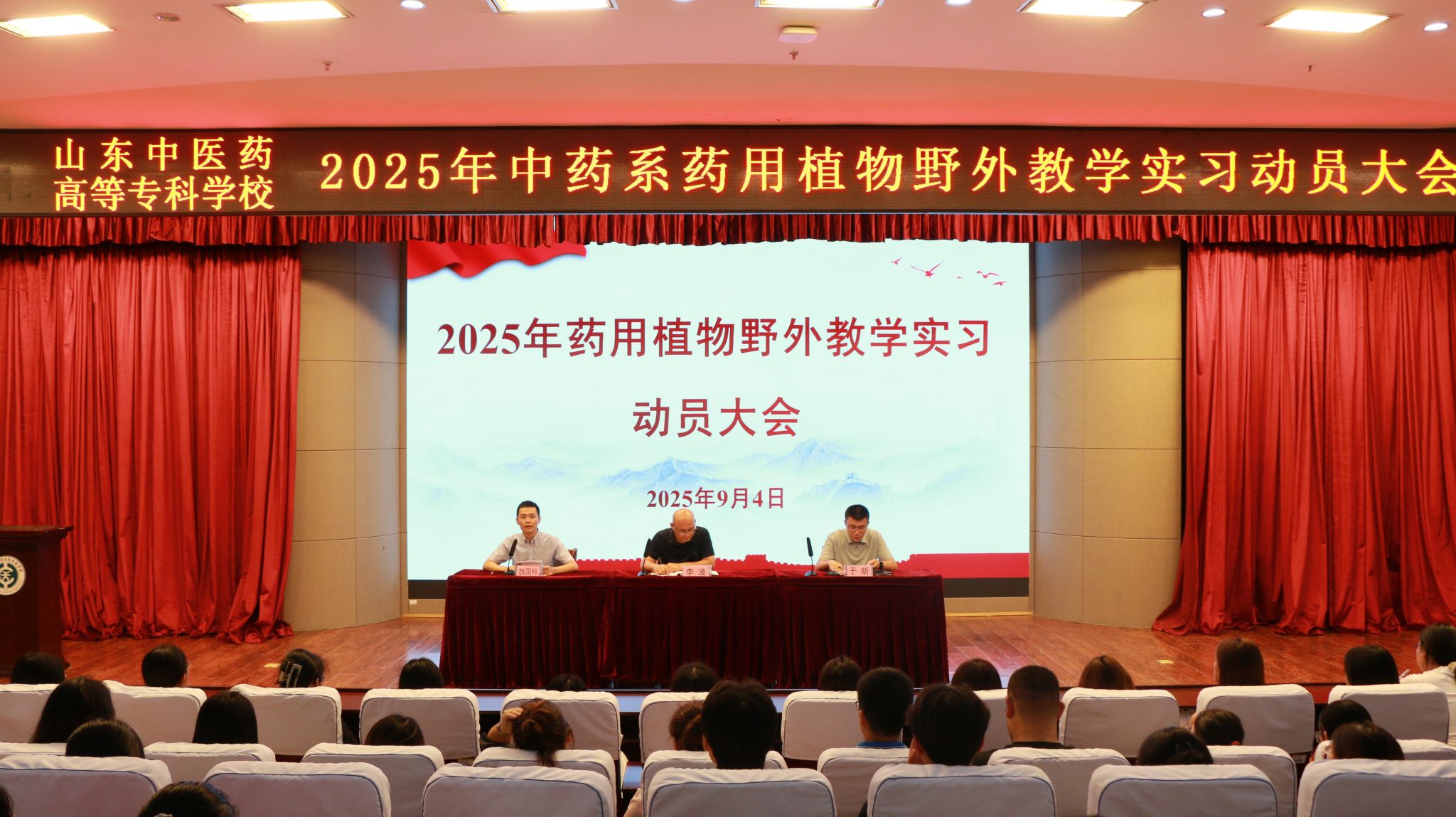 为确保药用植物野外教学实习工作安全、有序、高效开展,9月4日,中药系在仁和楼学术报告厅举办药用植物野外教学实习动员大会。会议由中药系主任李波主持,中药系党总支副书记于昕出席,全体带教老师、辅导员及2024级中药学、中药制药、3+2对口贯通分段培养中药学专业的278名学生参加。