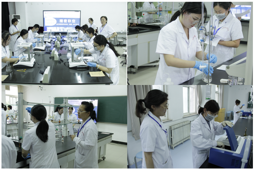 本次竞赛对接药物分析岗位能力要求和化学检验员考核标准,结合分析化学课程内容,设置理论知识、仿真操作、容量分析技能、光谱分析技能四个考核模块,全面覆盖了药物检验的核心技能环节。竞赛首次将“教师技能评比”纳入比赛单元,指导教师从以往单纯的指导转向既指导又参与,既是教练又是选手,大大提升了其专业能力。参赛师生在模拟真实药物检验场景中,同台竞技、同标评分,依次完成理论答题、药物称量、溶液配制与标定、光学检测、液相色谱法虚拟仿真、数据处理及实验报告撰写等8个流程操作,环节丰富、节奏紧凑。教师的参与,便于开发更贴合生产实际和岗位需求的课程体系;对于学生,操作水平和实践能力也得到了进一步的提升和增强。