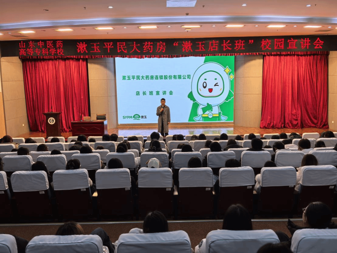 11月20日,漱玉平民大药房连锁股份有限公司在仁和楼一楼报告厅举办“漱玉店长班”校园宣讲会。漱玉平民人力资源部经理王俊到校宣讲,中药系实习负责人董法坤及2024级学生参会。