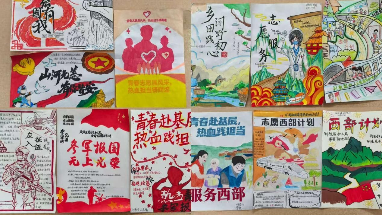 活动以政策解读与价值引领为核心,聚焦“大学生参军入伍”“三支一扶”“乡村医生”“西部计划”四大重点领域,创新采用“政策可视化+实践故事化”创意海报传播范式,以本草元素为底、青春色彩为墨,将晦涩的政策要点转化为直观图文,把基层服务典型的实践故事绘制成鲜活图景:或定格乡村医生背起药箱巡诊山路的身影,或勾勒“三支一扶”学子在田间地头推广中药材种植技术的场景,或用迷彩线条勾勒参军青年的热血模样,让基层服务的价值与机遇跃然纸上。