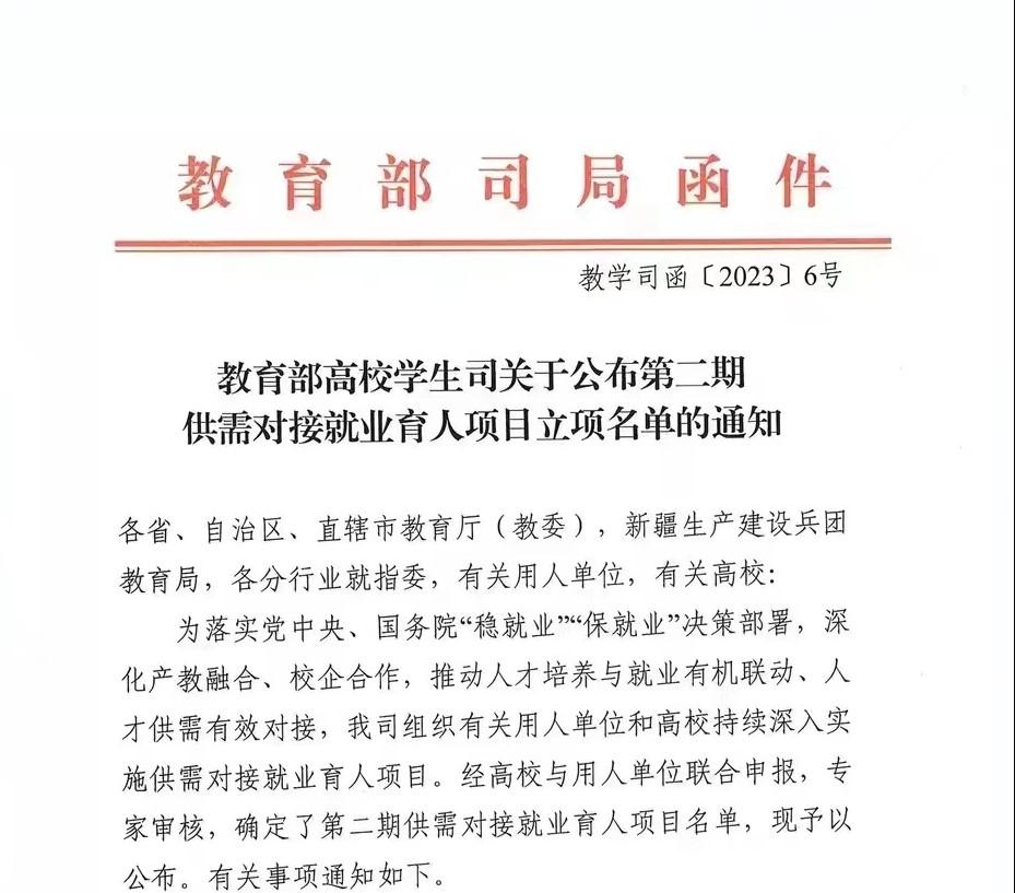 学校2个项目成功立项教育部第二期供需对接就业育人项目