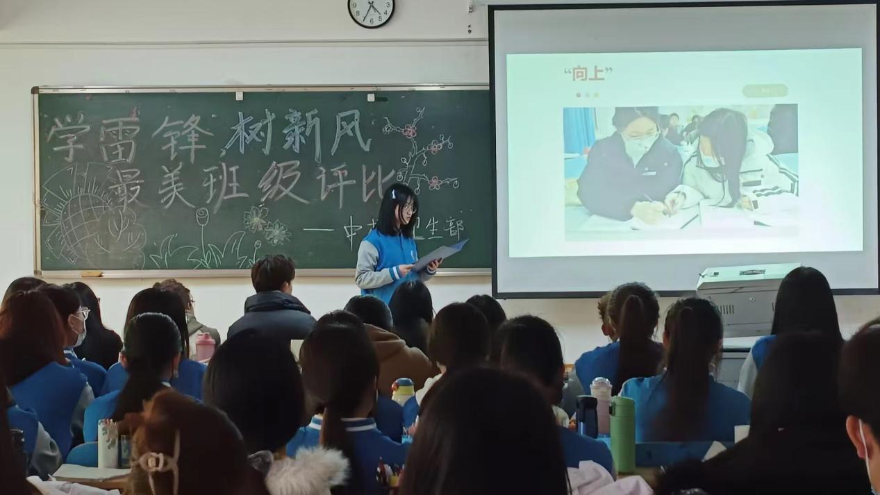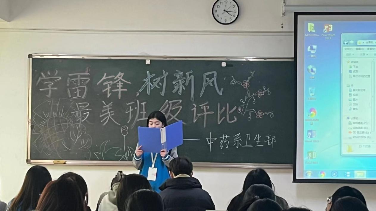 此次评比过程中,首先由各班代表用PPT演讲的形式介绍班级情况,并通过视频展示班级“弘扬雷锋精神团结协作”的风采,充分彰显出了学雷锋活动月主题。最终,2022级中药1班、2022级中药6班获评为“雷锋式最美班级”。