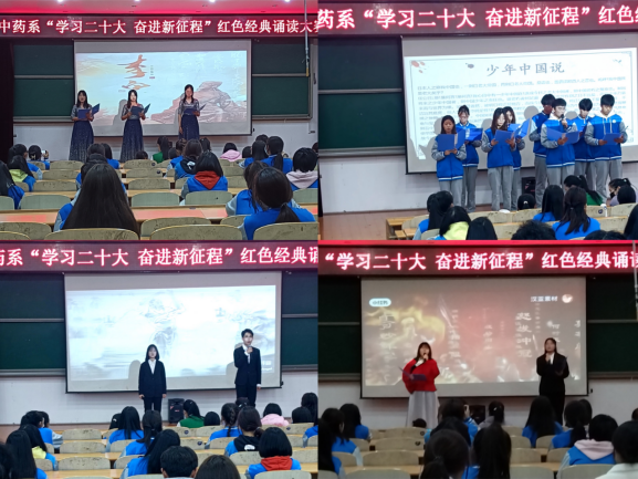 为深入学习宣传贯彻党的二十大精神,汲取思想伟力,激发奋进动力,进一步传承红色文化,厚植爱国爱党情怀,中药系于11月18日在教学楼102学术报告厅举办“学习党的二十大奋进新征程”红色经典诵读比赛。