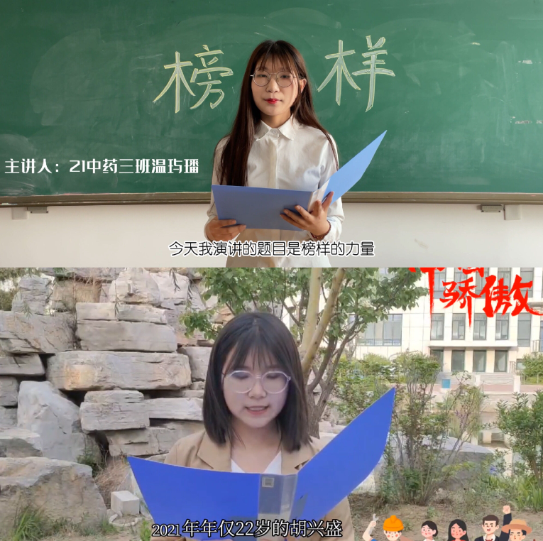 此次活动以线上视频演讲的方式举行,同学们围绕全国各行职业榜样的真实事迹,结合自身专业实际,以充满激情的语言,从不同角度诠释着榜样的力量:21中药5班郭兴研讲述了2022年“最美职工”、全国五一劳动奖章获得者、中国航天科工集团第二研究院283厂二车间技师胡兴盛的劳动者成长之路;21中药3班温屿璠讲述了2021年“大国工匠年度人物”中国航天科技集团有限公司四院7416厂的徐立平冒着生命危险“雕刻火药”的敬业精神;20中药2班张浩然讲述了2022年全国五一劳动奖章获得者陈小兰传承中医药炮制技艺的工匠传承故事……20中药3班王玺同学说:“对于即将踏入实习岗位的我们来说,要把劳动楷模、技术能手作为‘追星目标’,努力成为一名‘手脑双挥、匠心致远’的新时代青年。”最终,21级中药二班李欣雨、陈志莹两位同学获得一等奖。