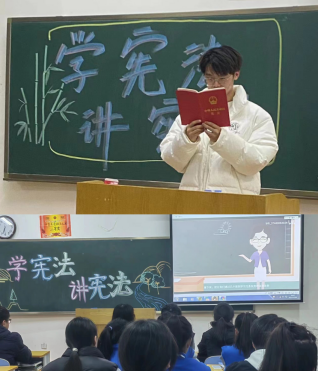 二是开展“宪法我来读”主题团日活动。将宪法学习和主题团日相融合,团支书分别从宪法的概念、宪法的特征、宪法的性质和我国宪法的发展历程等角度入手进行领学,使同学们全面系统地了解体会了宪法在中国特色社会主义法治体系中的重要作用。