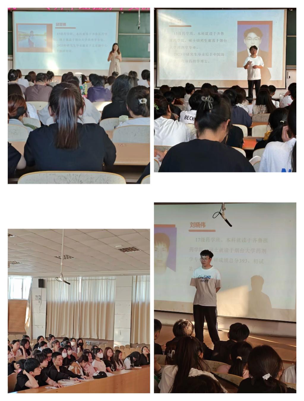 苏彦国是15级药学专业学生,目前在中国海洋大学攻读药剂学博士;邱亚楠是15级药学专业学生,目前就业于北京脑中心与类脑研究院;刘晓伟是17级药学专业学生,目前在烟台大学攻读药剂学硕士。面对即将踏入实习岗位的同学们,三位校友从树立目标,人生规划、职业发展、兼顾工作学习等方面进行分享,并建议同学们要脚踏实地,扎实专业知识,适应新的学习环境,为未来的发展打好基础。经验分享后,三位校友就同学们提出的专升本考试、职业发展等问题做了详尽的解答。