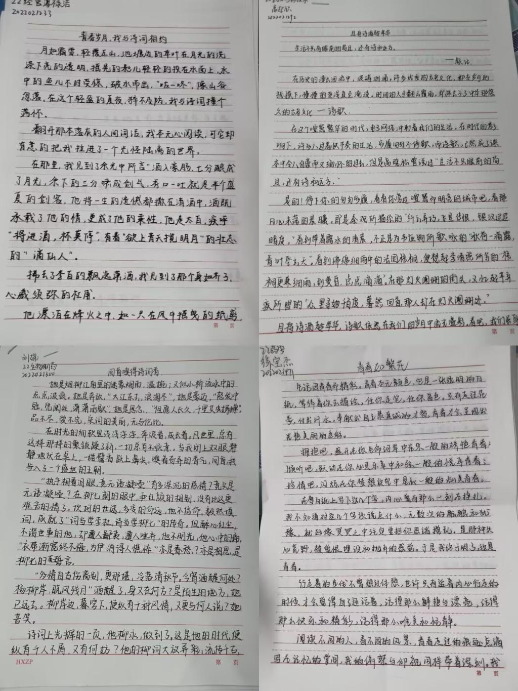 向阳草木青,荫浓夏日长。夏日悄然来临,夏天是一个充满活力又变化无穷的季节,这繁花似锦的夏天,令人心旷神怡,令人活力四射。同学们用笔触描绘校园文化元素,用文学的视角定格校园美景,亲近自然,深度思考,抒发心中所思。2022级生物制药班的高迎欣写道:看到绵绵细雨中的梧桐,便想起李清照所写的“梧桐更兼细雨,到黄昏,点点滴滴”;2022级经管班的薄禄洁写道:太极湖边的草叶在月光的洗涤下亮得透明,摇曳的影儿轻轻地投在水面上,水中的鱼儿不时受惊,破水而出……一篇篇洋洋洒洒、感人肺腑的文章无不蕴含着同学们对学校的热爱和赞美。
