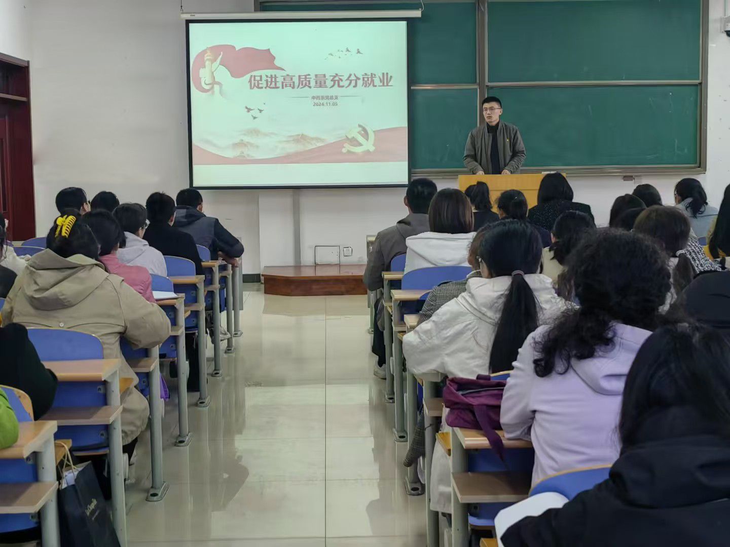 中药系党总支副书记于昕首先领学了《促进高质量充分就业》,强调文章深刻阐述了就业对于国家发展和社会稳定的重要性,提出了实现高质量充分就业的路径和方法。于昕指出,文章为我们指明了在新形势下如何更好地服务学生就业、促进学生全面发展的方向,对于中药系的教育教学工作具有重要的指导意义。