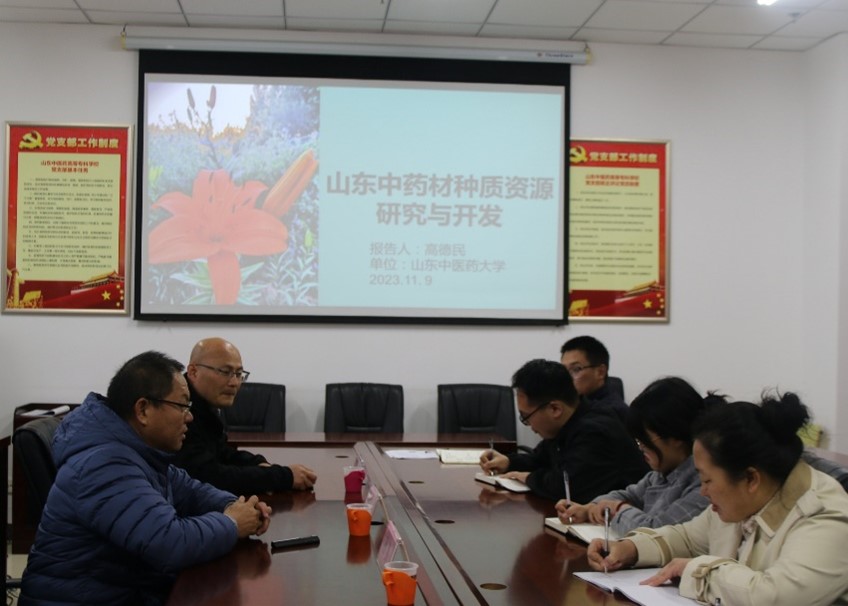 高德民教授以“山东中药材种质资源研究与开发”为题,结合自身多年教学科研经验,从种源的收集、中药资源圃与药材基地建设、仿野生抚育和产品研发等方面为大家作出系统讲解和经验分享。会后,大家进行积极交流互动,高德民教授对开展科研工作中遇到的问题进行详细解答,并给予建设性的意见。