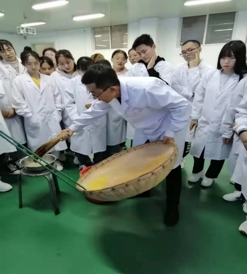 在中药制药实训室里,一颗颗水丸在翻飞的药匾中渐渐成型,普通的药材完成华丽的变身,这是中药系姜仁禹副教授正在示范指导学生制作丸剂。在《中药制药技术》实训课上,传统手法与现代工艺交互相助,同学们团结协作,制作出蜜丸、水丸、散剂、软膏等中药传统剂型,亲身感受着中华民族几千年来的智慧结晶,体会着中医药人独有的辛苦和快乐。同学们在古今结合的实践中,深入感受中药制药的古法传承和现代发展,思考如何推动中药制剂的推广转化,实现中药事业传承创新发展。