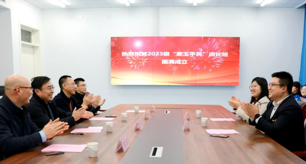 王亭对刘相晨一行表示热烈的欢迎,在致辞中讲述了自己三次到访“漱玉平民”的感受,赞扬了“漱玉平民”的企业文化,并对学生职业生涯规划提出了宝贵的建议。刘相晨介绍了公司文化、紧密关系的校企合作以及学生在企业的发展,希望同学们珍惜漱玉平民店长班的培养机会,做好职业生涯规划,争取更多就业机会。